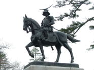 - 政宗公の騎馬像横に立つと、仙台市街を一望できます。