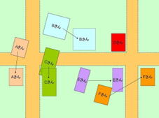 - 事業計画に定められた設計(街区)に基づき、それぞれの従前の土地に対応し整理後の宅地を再配置します。