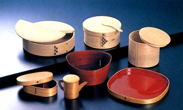 - 秋田杉の薄板を曲げて作る大館の代表的な工芸品。薄板に熱湯をかけて曲げ、桜皮で縫い止めて作られます。